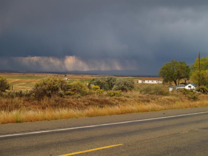 Nachdem wir in Dove Creek eine Pause gemacht haben, sind wir auf eine Schlechtwetterfront aufmerksam geworden. Wir haben uns ins Zeug gelegt, weil es in der Richtung in die wir wollten am Himmel noch recht freundlich aussah.