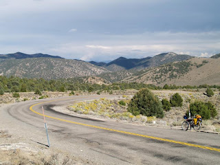 Man hat uns erklärt, dass es ratsam sei von dort aus nicht weiter dem Highway 50 zu folgen, sondern stattdessen einer alten Straße, die wieder auf den 50ger zurückführt. Aus folgendem Grund: Wenn wir dem Highway zu unserem nächsten Etappenziel fahren (Austin) wird unser Wasser kaum reichen. Fahren wir die alte Straße, müssen wir dann zwar einen Pass bewältigen, aber danach gibt es einen Bach dessen Wasser man trinken kann. Wir haben uns dann für Letzteres entschieden und sind losgefahren.
