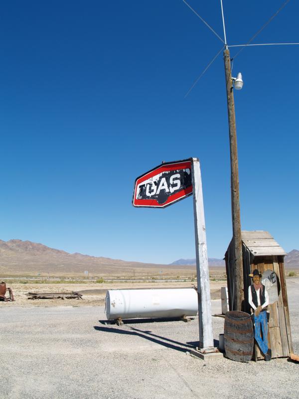 Heute stand wieder eine Wüstenetappe an. Mit Sand und mit Gestrüpp so weit das Auge reicht. Eigentlich unspekakulär. Nach einiger Zeit sind wir aber wieder aus der Ebene rausgekommen und wieder in die Berge rein. Das sind wohl nun die Vorboten der Rockies... Wir sind weiter dem Highway 50 gefolgt der um Carson City gestern noch so voll mit Autos und Lastwagen war. Hier draußen wird aus dem Highway aber die „einsamste Straße Amerikas“. Das habe ich gelesen, als wir zur Mittagspause in Middelton angehalten haben. Die einzige Möglichkeit überhaupt heute an was essbares zu kommen. Der Ort, der eigentlich ausschließlich aus der Raststätte am Highway besteht ist wirklich sehenswert. Es sieht aus wie man es aus dem Film kennt. Verrostete Schilder draußen, die zeigen dass man auch tanken kann. Keinen asphaltierten Boden sondern nur Wüstenstaub und Leute ohne Zähne die dort arbeiten.