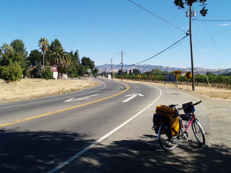 Die Stadt Vallejo liegt praktisch am östlichen Ufer der San Francisco Bay. Von dort bin ich der Route vom ACA gefolgt. Die Adventure Cycling Association ist eine Organisation, die ein Routennetzwerk in den USA geschaffen haben und dazu passende Karten und Daten anbieten. Die Nutzung dieser Routen ist eben dann interessant wenn man zum ersten Mal in den USA mit dem Rad unterwegs ist und etwas benötigt, was verlässlich und gut zu planen ist. Ich habe die Route mittels einem Routenplaner (www.bikeroutetoaster.com) auf ein Garmin Dakota 20 übertragen. Das heisst, ich muss in der Regel nicht an jeder Kreuzung anhalten um auf die Karte zu sehen, sondern ich bekomme immer angezeigt wo's langgeht. Das ist praktisch und spart enorm Zeit. Ebenso kommt man nicht aus dem Tritt weil man eben nicht anhalten muss. Der Nachteil eine vordefinierte Route zu fahren ist eben auch der, dass man als Radtourenfahrer nur einer von vielen ist. Ich habe aber auch gemerkt, dass das aber nicht hinderlich ist mit den Leuten ins Gespräch zu kommen.